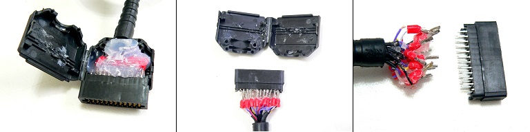 また配線を取り外し、コネクタに基板を付けて配線しなおします。使われているコネクタハウジングは本来
