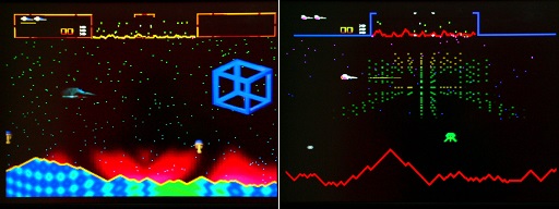 す。下の写真中はディフェンダー2000のプレイ画面。ゲームは敵を全部やっつけるのですが、敵宇宙船に