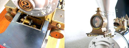 左の写真は循環オイルポンプ。右の写真はヘッドライト(カーバイトランプ)光りませんが・・・。