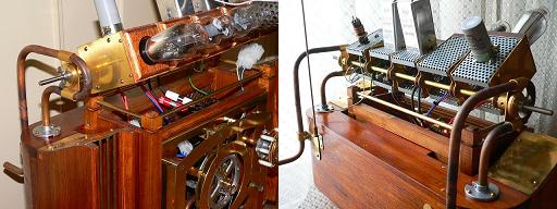 例えば同調ダイヤルは手前側に、真空管は後側に並んでいます。これでは真空管が目立つ