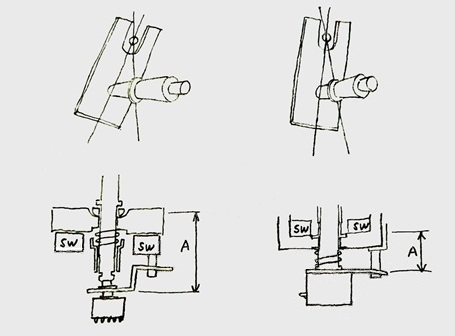 スイッチの距離Aが離れています。これにより横に入るとシャフトが少しねじれるのです。