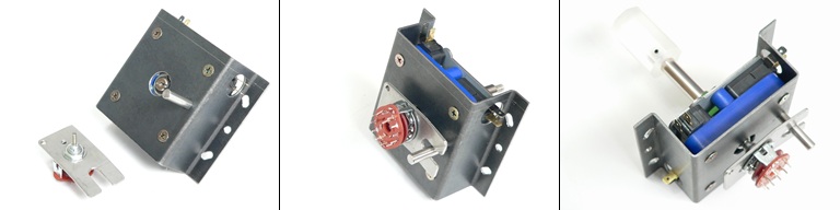 そこでふと思いました。青いパーツにそのままマイクロスイッチを取り付け、シャフトのみ逆