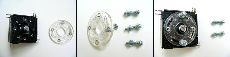 やり方は、円形のパーツを取り外して、ねじがはまる窪みの部分にSワッシャをはめて、元とは