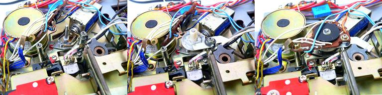 曲が切り替わりません。そこで早速中を明けてチェックします。一般的なカセットテープレコーダー