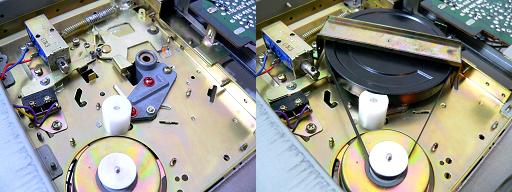 付けが完了したところになります。ヘッドはバネで白いギアに押し付けられており、ギアが回転する