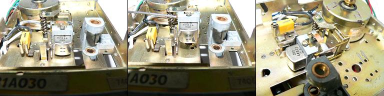 ここでヘッドの動きをチェックします。やはり全く動きません。まあ、フライホイールが長年動いて
