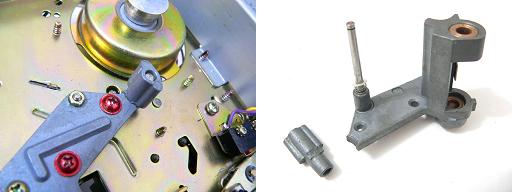 (先ほどの折れたアルミ鋳物と同一パーツ)が緩くなっていて、再生する内に軸受けがホルダーの奥に