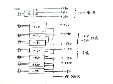 に電圧が上がるからです。次に+、-の22Vですが、これは19Vのスイッチング電源を2つ使用します。
