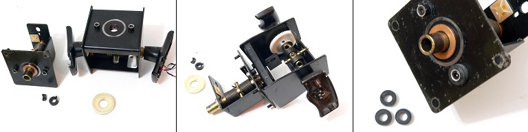 クリーニングが終わったのでグリスアップして組み立てます。ロール動作のボリュームに付くギアは、真鍮製