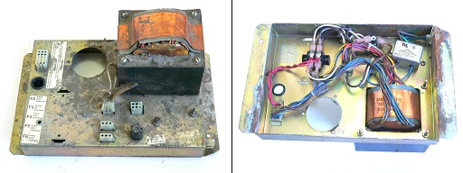 りが死亡しています。写真右はトランス部のヒューズカバーとシール。これらは無くてもいいのですが、
