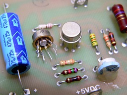 ズが聞こえる様になったからです。下の写真左が修理が完了した安定化基板と交換した部品。半導体ばか