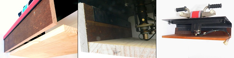 中)。とりあえずギリギリまで低くして底板の軸の部分を5㎜程度彫りこんでかわします。