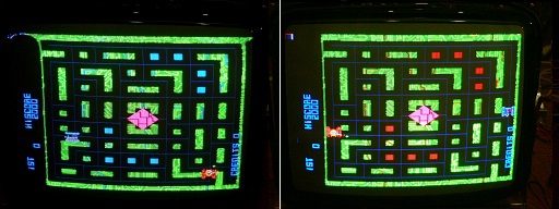 がありました。下の写真左では画像が流れていますが、この基板はV-SYNCとH-SYNCが別々に