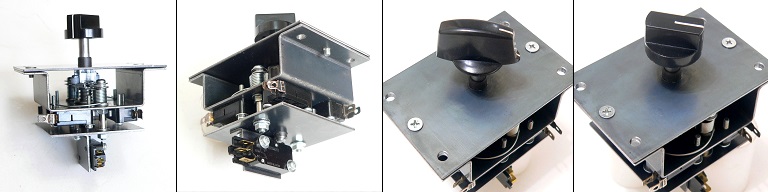 これは透明アクリルで製作しました。そして軸にカムを取り付け、回転によりマイクロスイッチが