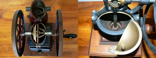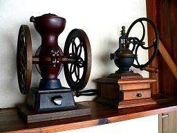 手動式ミルが2種です。左のものが70年ごろの日本製、右のものが85年ごろのイタリア製です。