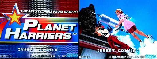 下の写真はプラネットハリアーズの起動画面。左の緑の文字が海外版。海外版はゲームの操作説明