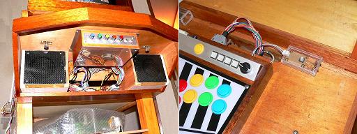 このタイプの筐体でも、多機能に出来ます。ゲーム基板の画像を別のモニターに出力するとか、