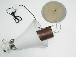これは謎の照明器具です。元々この器具には映写機に使われる様な電球が使用されていました。