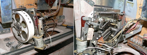 を調べるとありました。固着したメカが。下の写真で白いドラムはクレジットのUP/DOWN
