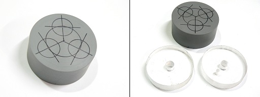 の3つのくぼみの付いたノブもアクリルの積層で製作してみました。